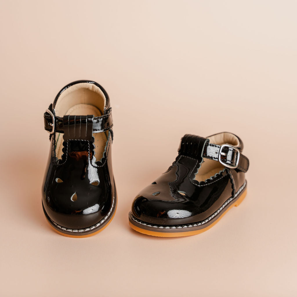 Scallop T Bars (Reg Buckle) - Black Patent
