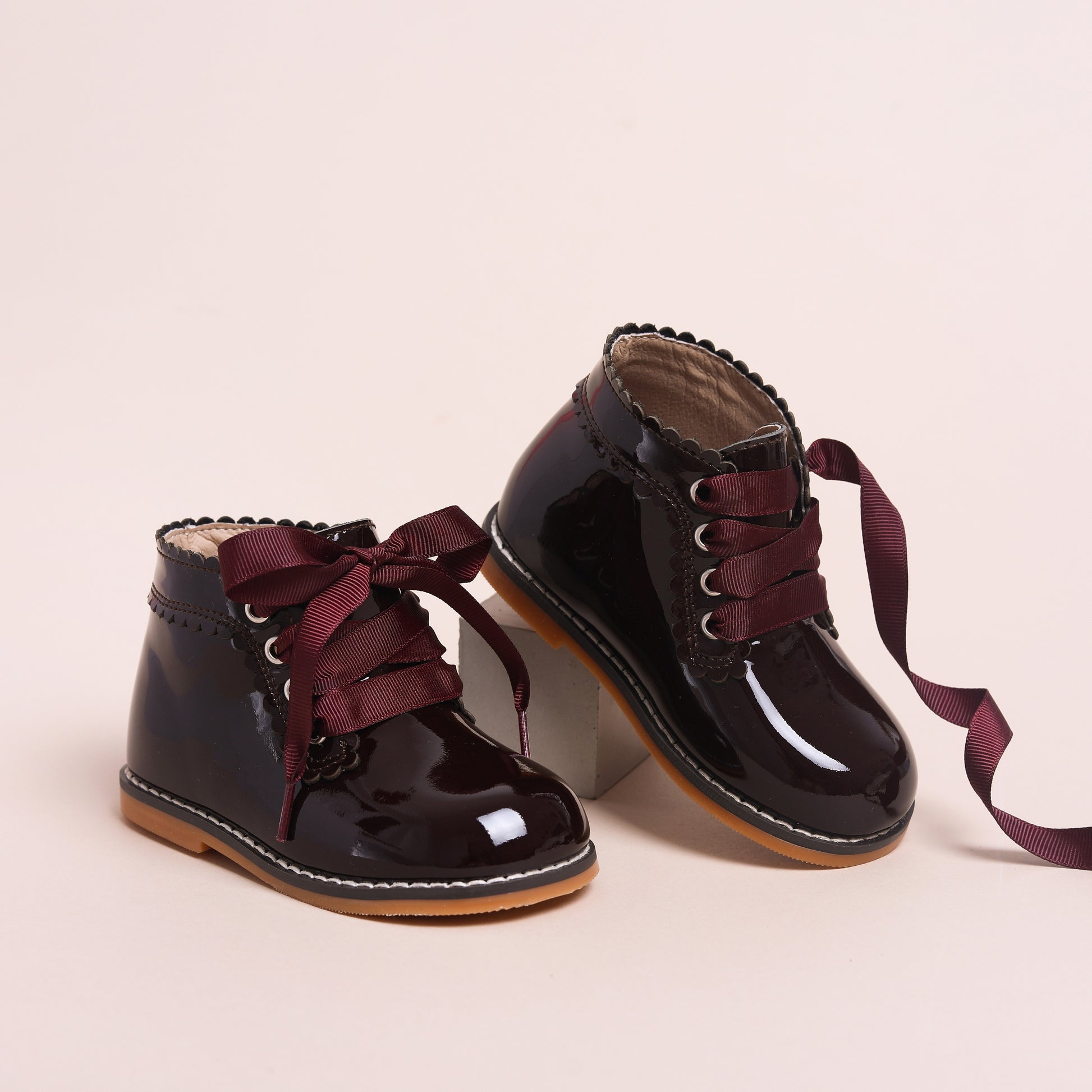 Nova Boots - Chocolate Patent No Ribbon Laces